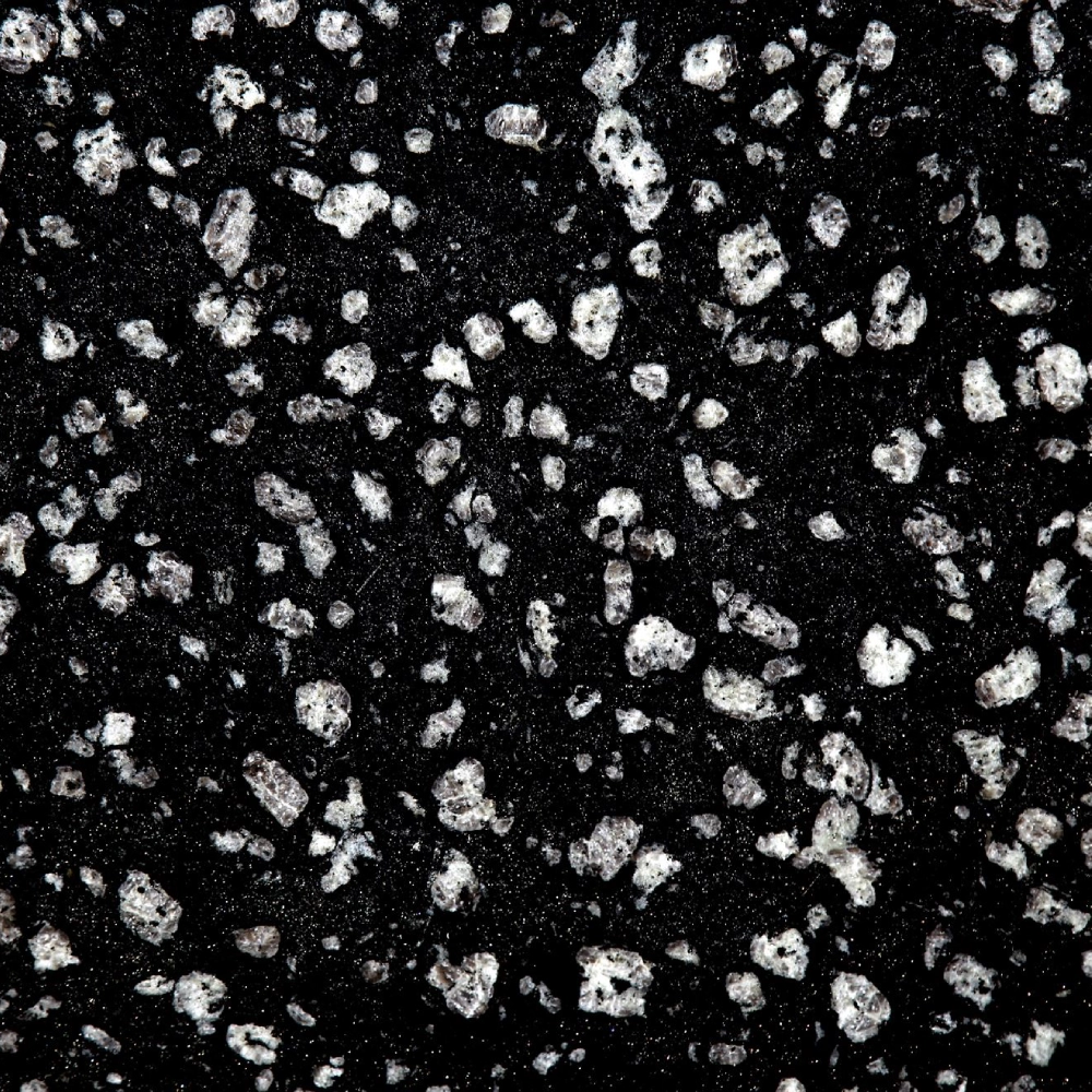 The black base with coin-like speckles is 100% natural—no dyes or treatments are used. Each slab is carefully quarried and polished to bring out its deep color and reflective surface. The dense structure of the granite makes it resistant to scratches, heat, and stains, which means it stays looking great even in high-use areas.