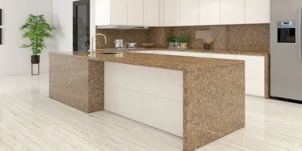 This granite is known for its long-lasting quality, polished surface, and ability to handle daily wear. It’s a great choice for high-use areas like countertops, floors, and wall cladding because it resists heat, stains, and scratches. Its golden tones pair well with wood, metal, or neutral shades, making it easy to match with your existing decor. If you’re looking for a strong, low-maintenance stone that adds natural beauty, Desert Gold Granite is a great option.