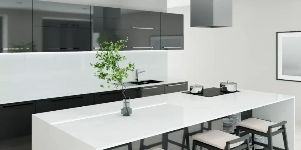 Crafted from a combination of natural quartz and polymer resins, Alaska Quartz offers robust durability and a seamless, glossy appearance.