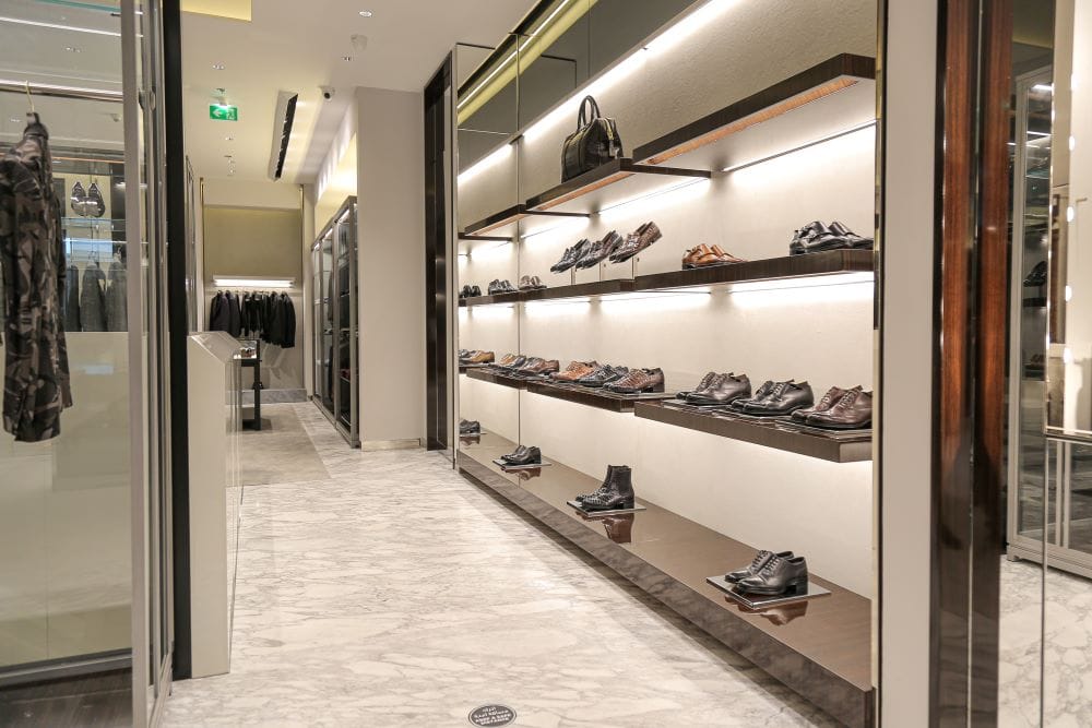 The marble flooring provides a sleek and elegant foundation, while the marble-clad walls and display areas enhance the store’s luxurious aesthetic, adding a timeless touch to the shopping experience. Every marble element was chosen and installed with precision, ensuring that the store exudes the brand’s signature elegance and refined style.