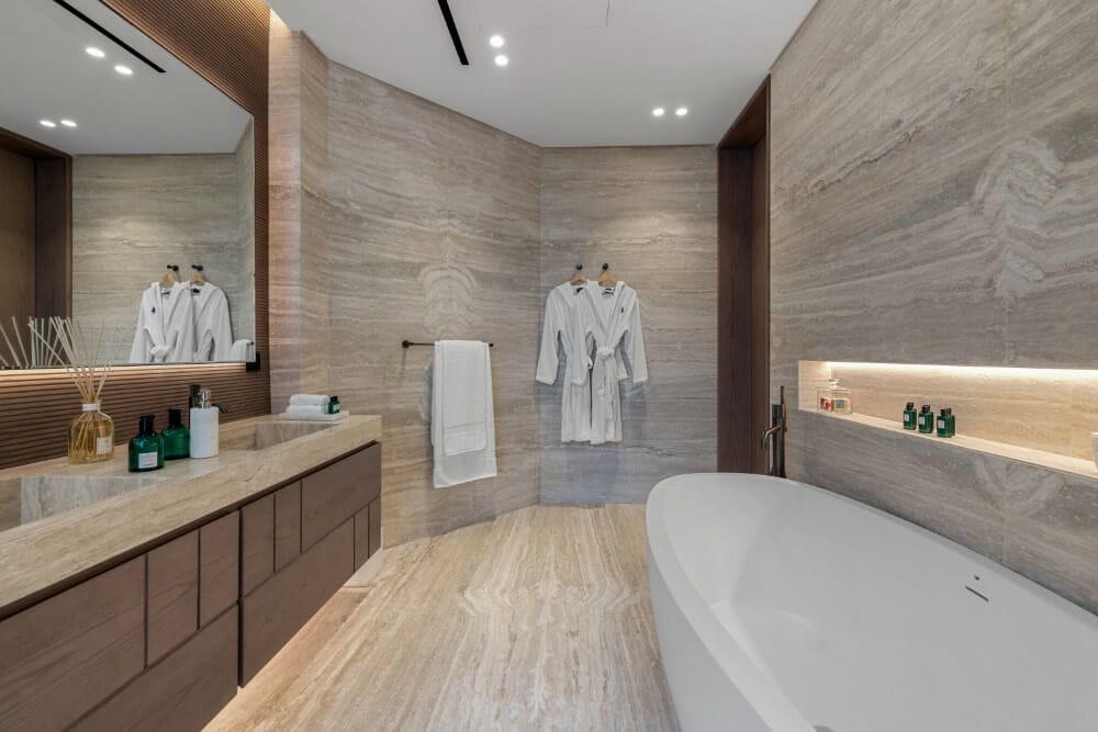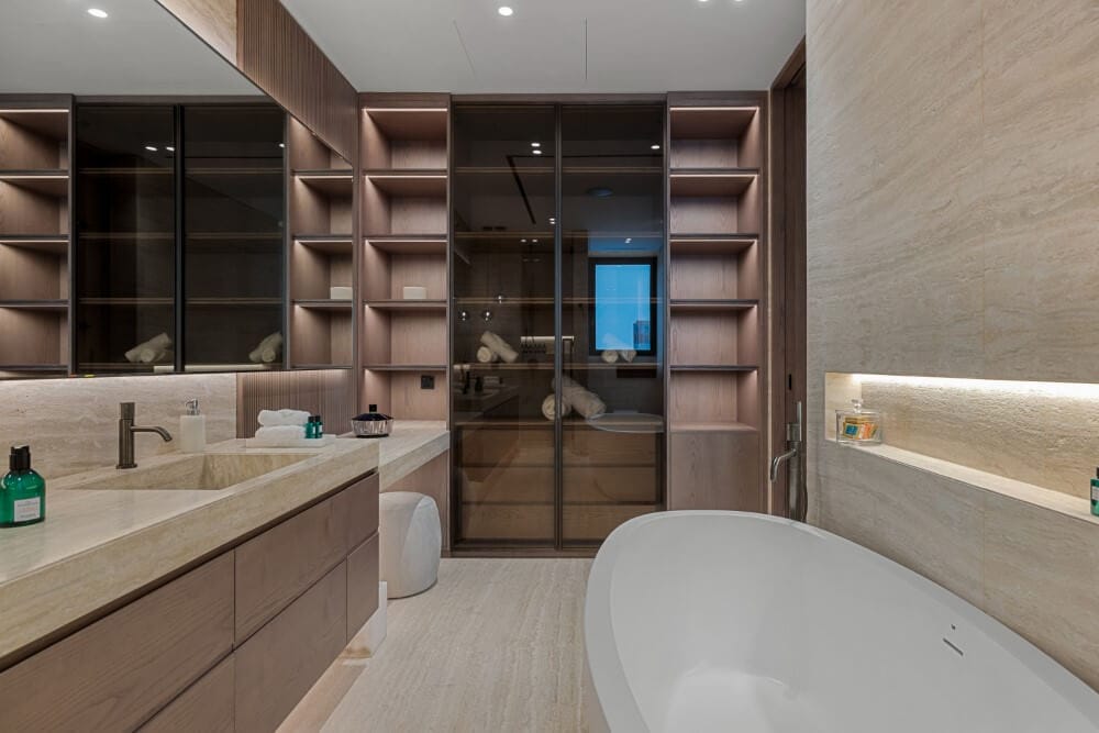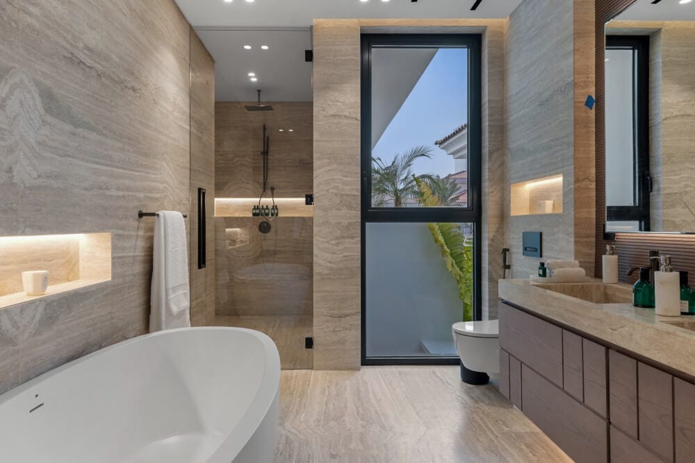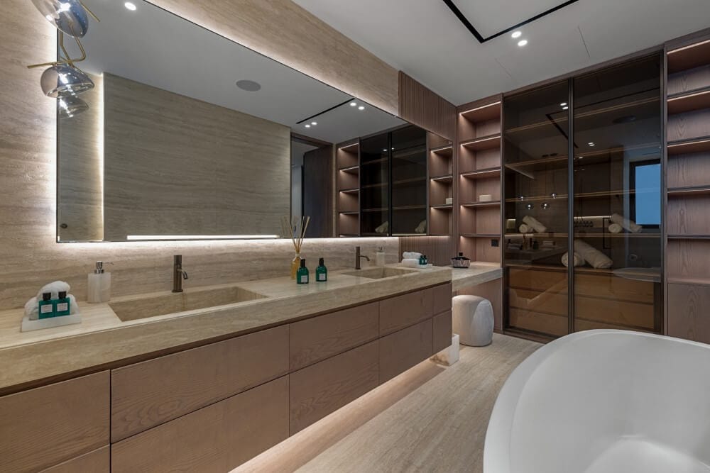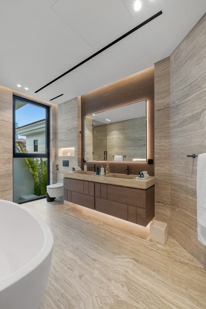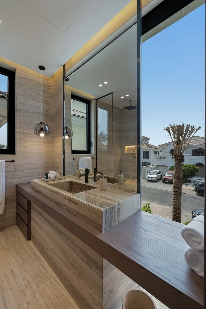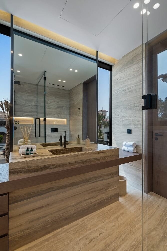In this high-end residential project, we had the privilege of transforming a 5 bedroom mansion into a showcase of luxury and sophistication. The design features impeccable craftsmanship, with travertine marble used extensively across the flooring, walls, and TV units, creating a seamless flow of elegance throughout the space.