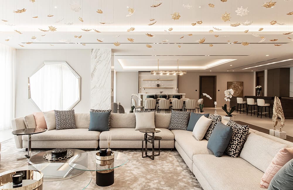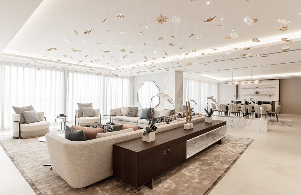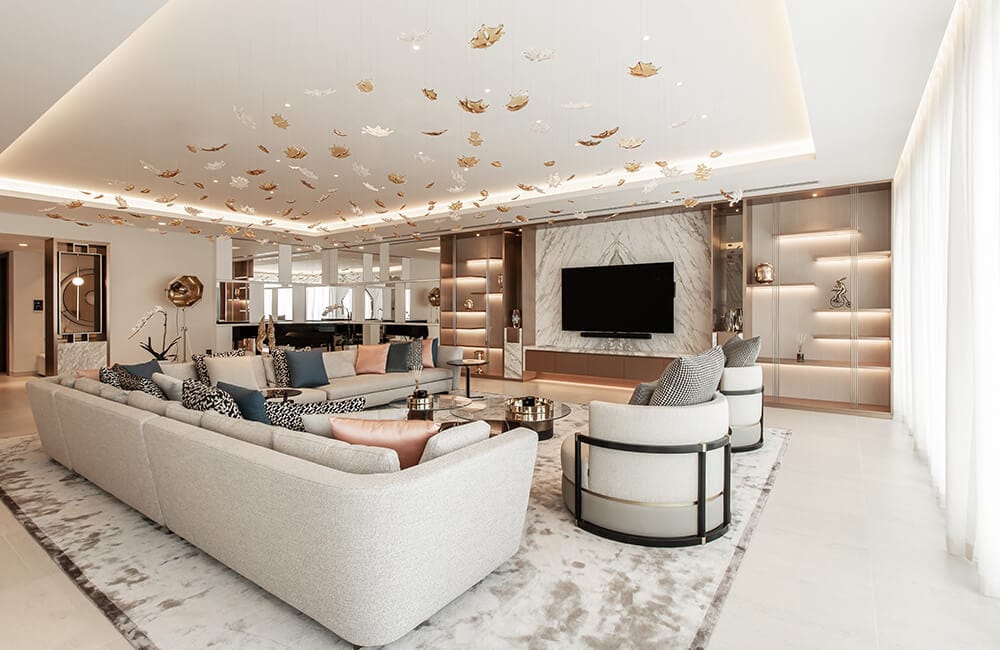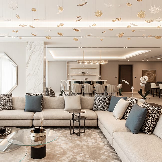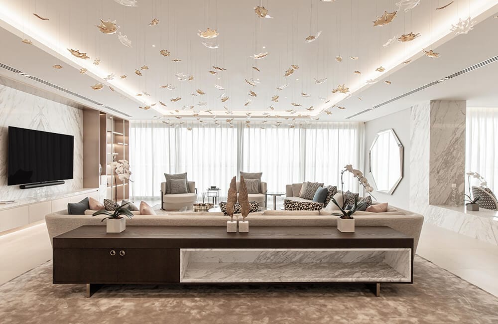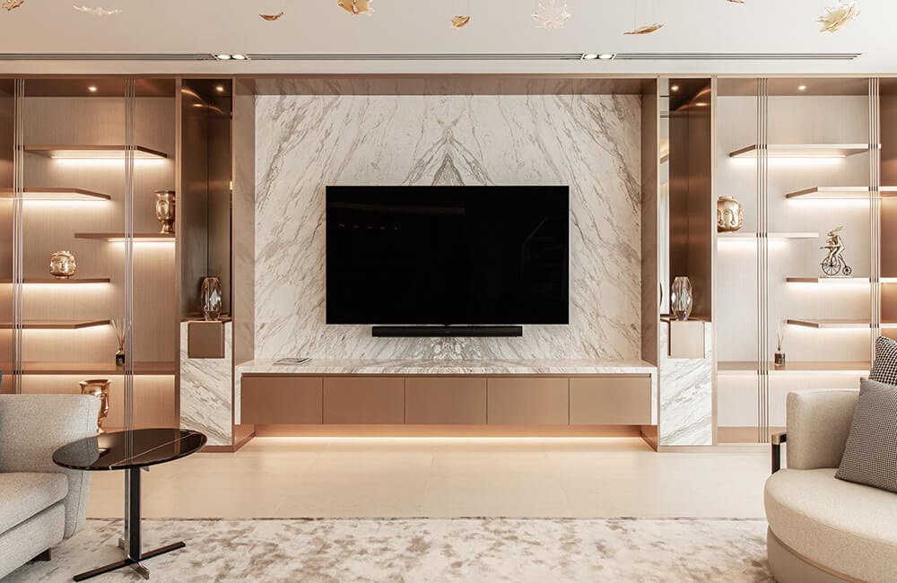 Gentle Feel Marble & Tiling Works LLC is proud to have brought a touch of luxury to a prestigious 3-bedroom apartment at Palm Jumeirah in Dubai. We meticulously installed marble in the living room, TV unit, and bar area, creating a truly sophisticated and elegant atmosphere.