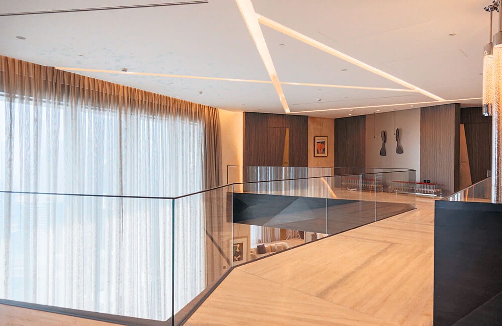 The installation was executed with precision, resulting in a stunning blend of timeless beauty and sophisticated design that enhances the overall ambiance of this two-story apartment.