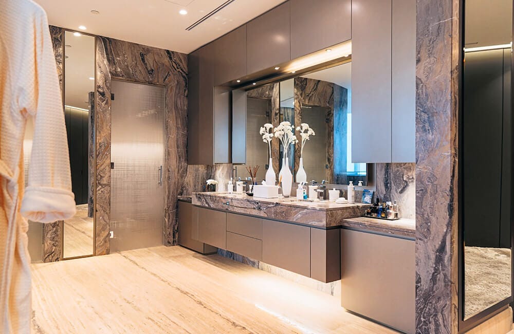 Our premium project at the prestigious Volante Tower in Business Bay, Dubai, showcases the transformative power of marble in elevating bathroom spaces to new levels of elegance and luxury. The luxurious bathrooms are adorned with carefully selected finishes, reflecting Marwa Marble’s dedication to craftsmanship and meticulous attention to detail.